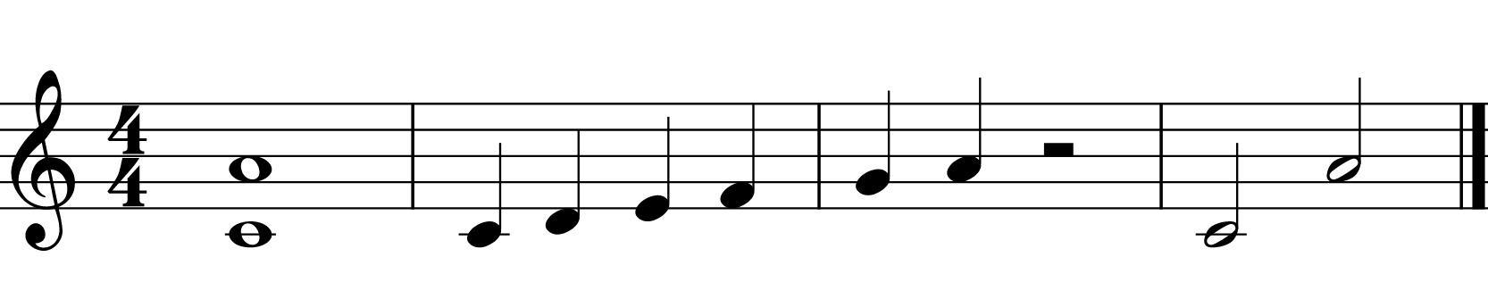 Listen to the recording to hear the relationship between the bottom and top notes.