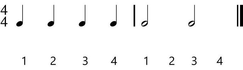 Notice every set of 4 beats is divided by a barline. There are 2 bars in this example.